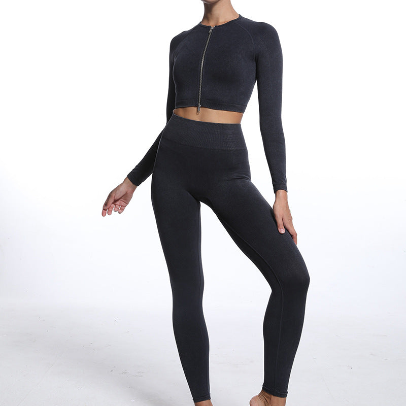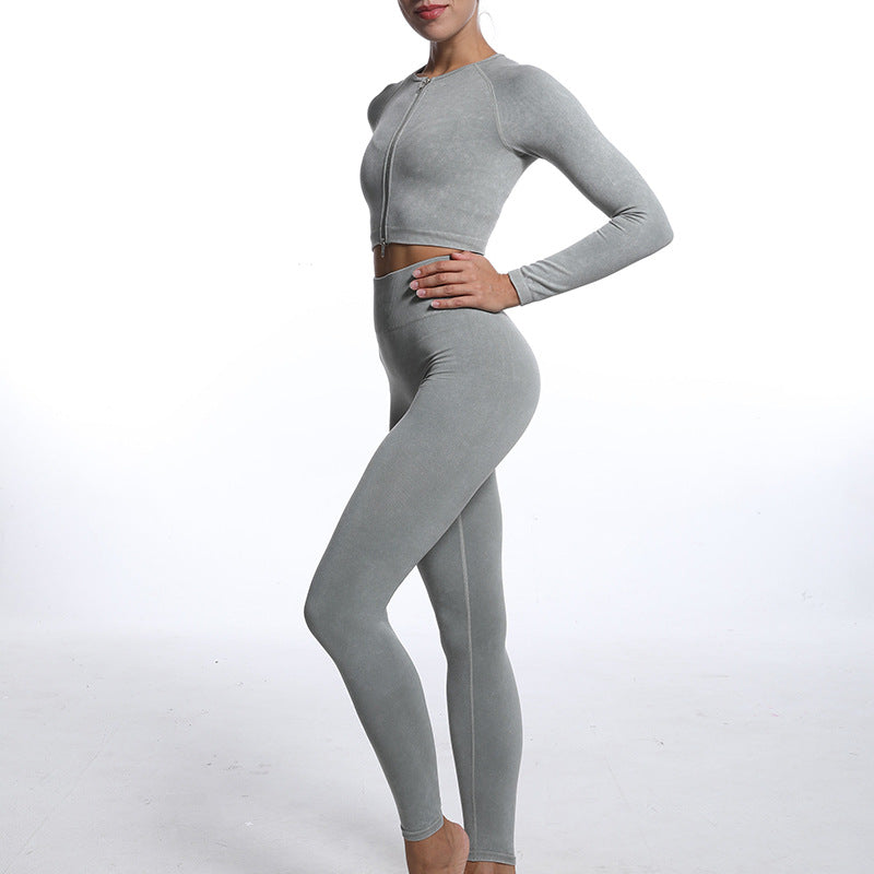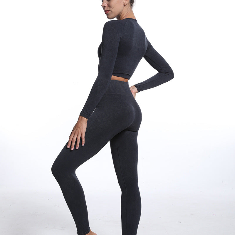 2 Piece Seamless Outfits Long Sleeve Crop Tops Leggings Active Gym Clothes