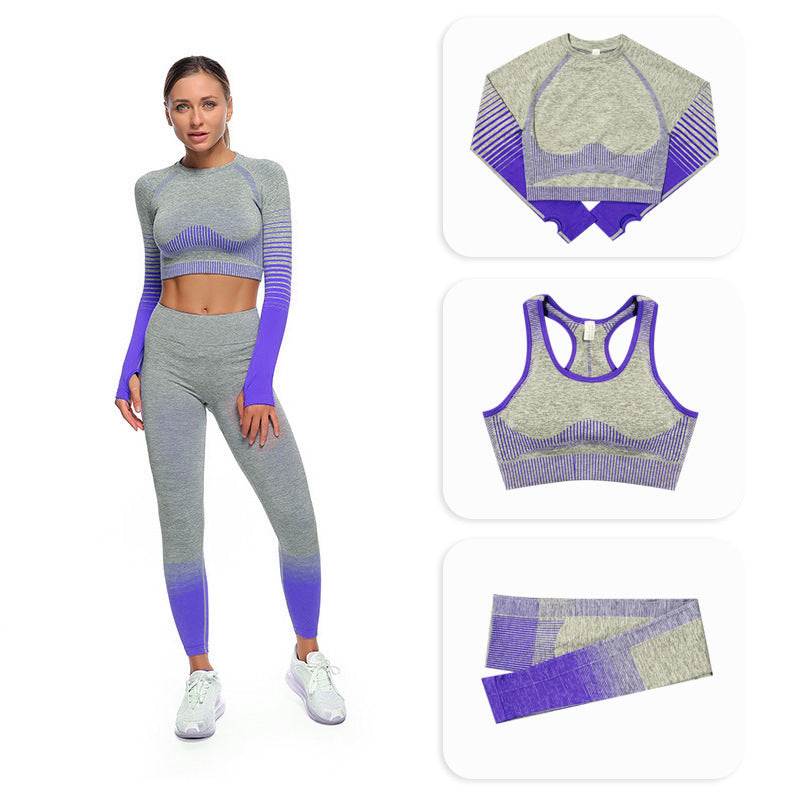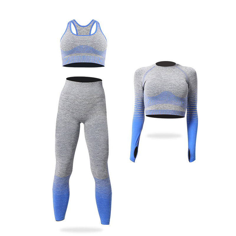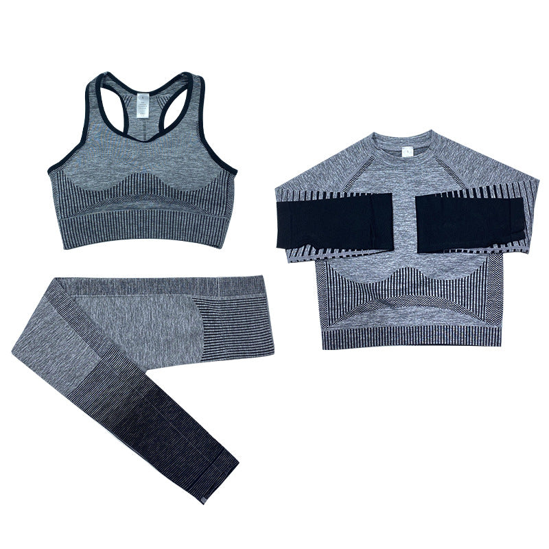 Custom Athletic Women Wear Workout Clothing 3 Piece Seamless Sports Bra High Waist Leggings