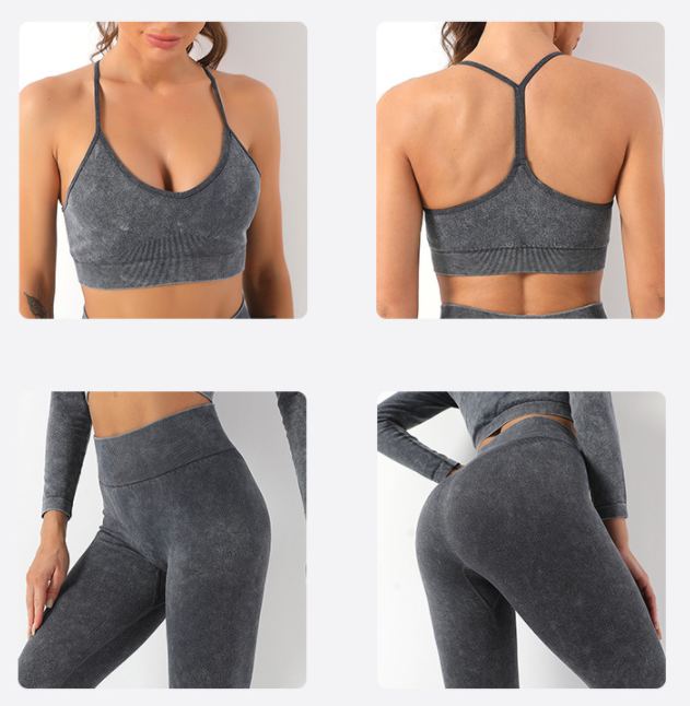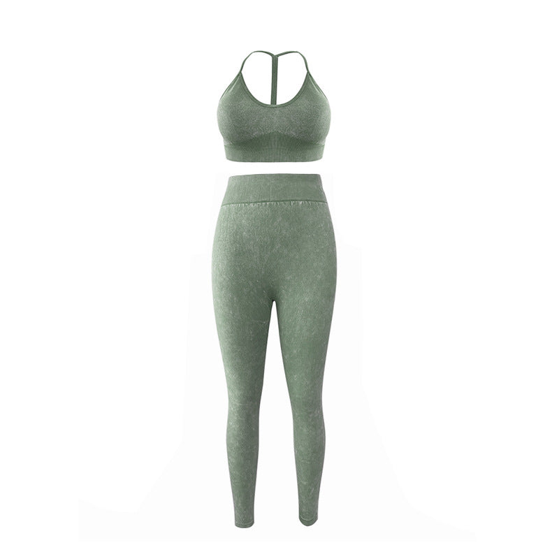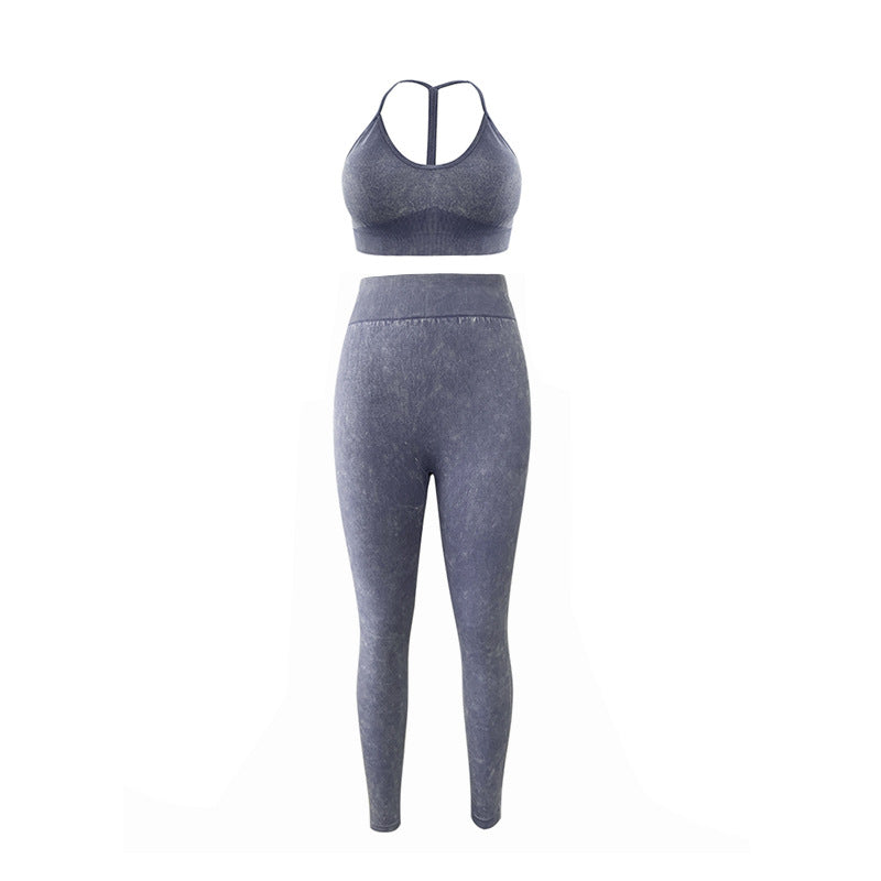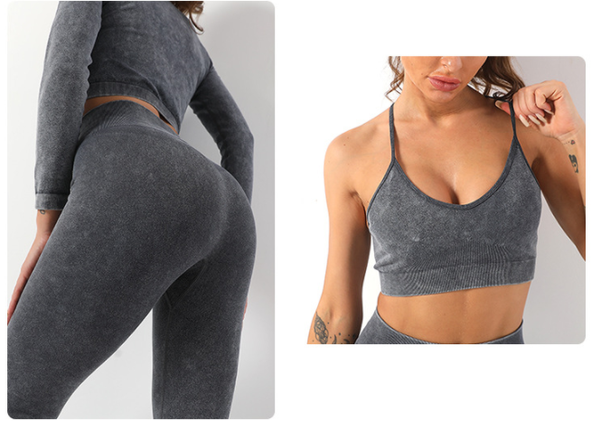 Popular fitness gym sport suit clothing tight leggings stretch seamless acid wash yoga wear set for women