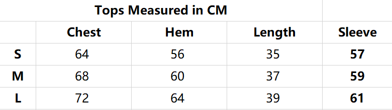 Please refer to size chart image for measurements.